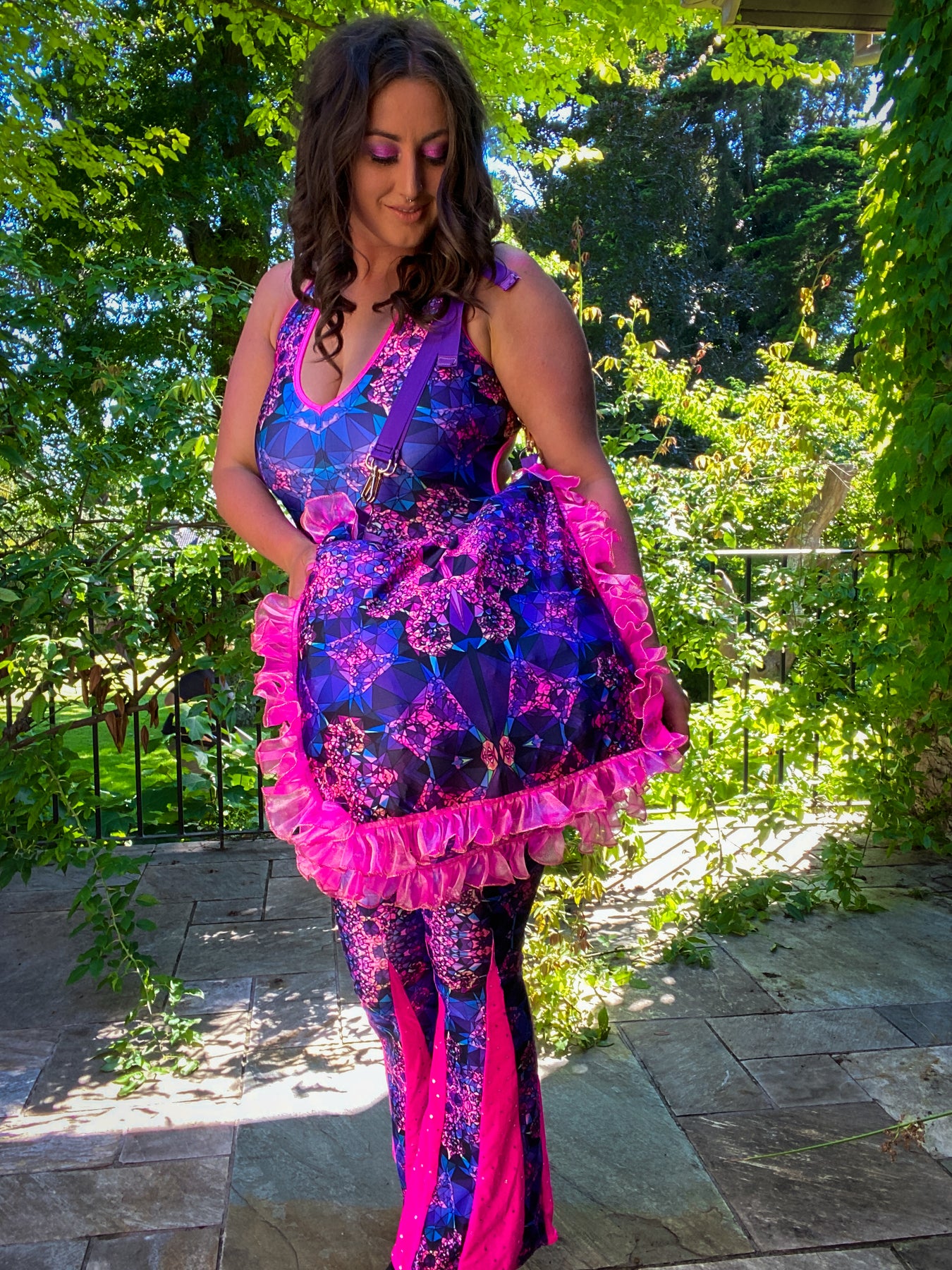 This piece will arrive on a velvet hanger, ready to hang up in your home as art / on your body as wearable art. Comes in a custom garment bag with holographic detailing to protect and make travel easy.